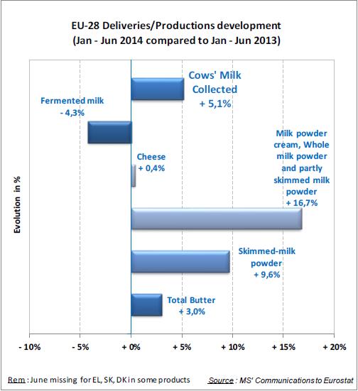 The Commission are keen to emphasise that the Russian ban only affects 1.5% of European production, however, in 2013, Russia accounted for 33% of EU cheese exports and 28% of butter exports. This explains their belief that that the proposed support measures, i.e. storage aid for butter, SMP and some cheese, ought to give a strong enough signal to the markets that surplus product (including the 250,000t of cheese locked out of Russia) will not be hanging around the marketplace.
